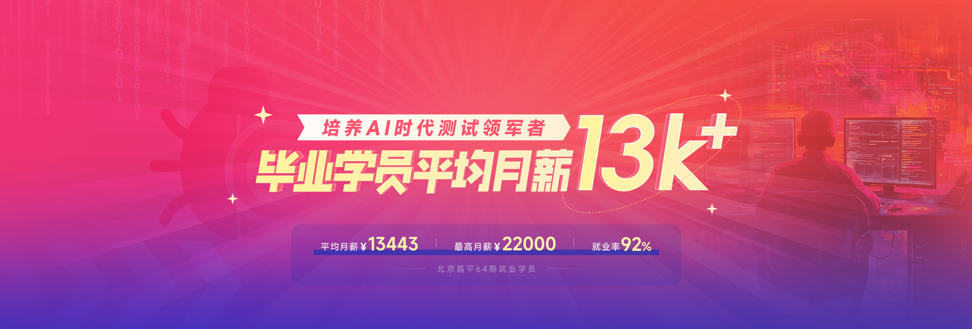 • 昌平校區軟件測試就業60期畢業學員:平均薪資11110元/月,最高薪資17000元/月,就業率94%,月薪過萬15人